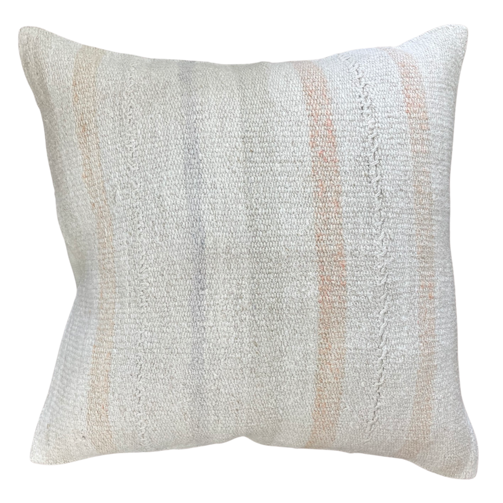 Enjoy the comfort and durability of this boho style kilim pillow in your home decor. This pillow includes a subtle stripe pattern, a down insert, and white cotton zipper closure back. This eye-catching kilim pillow is sure to be a conversation starter and pairs easily with a variety of other pillow styles! It also provides a high level of durability, resisting fading, stains, and wear and tear. Its unique look and feel make it an ideal choice for a home decor statement piece. Size: 24 x 24"