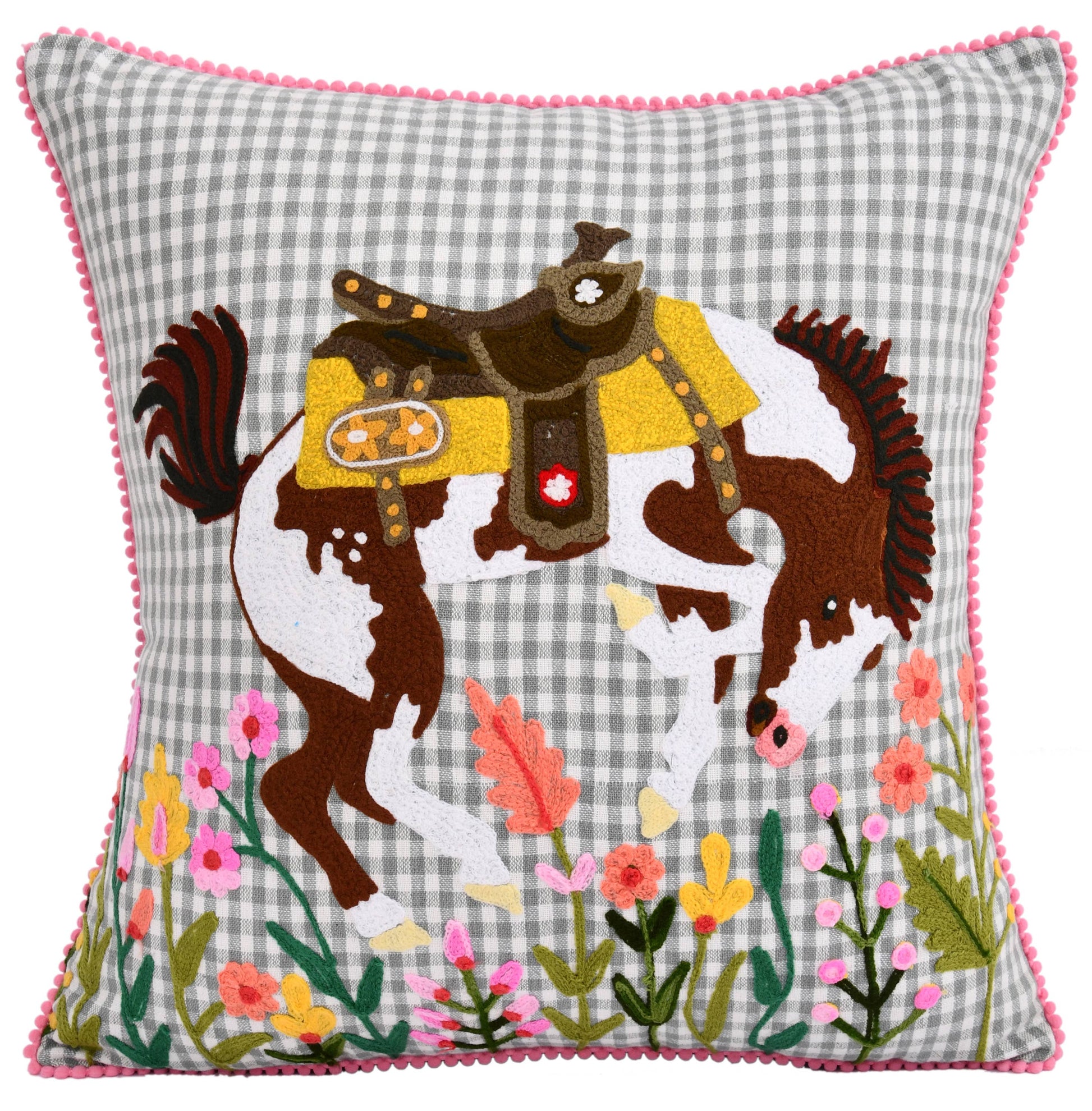 This Rodeo Bucking Horse pillow is the perfect addition to any western or farmhouse decor! 18 x 18 with a polyester fill.