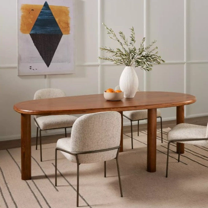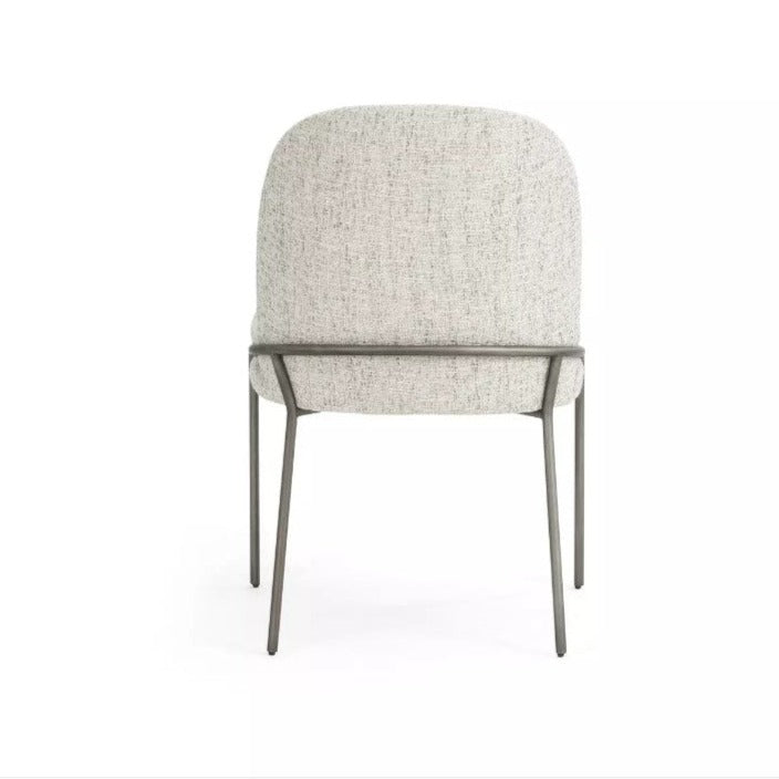 An Art Deco dream. Finely sculpted, scalloped-back dining chair of Four Hands-exclusive performance fabric pairs with slim, iron tube framing finished in a brushed slate, for a textural, fashion-forward feel. Dimensions: 21"w x 24.5"d x 32"