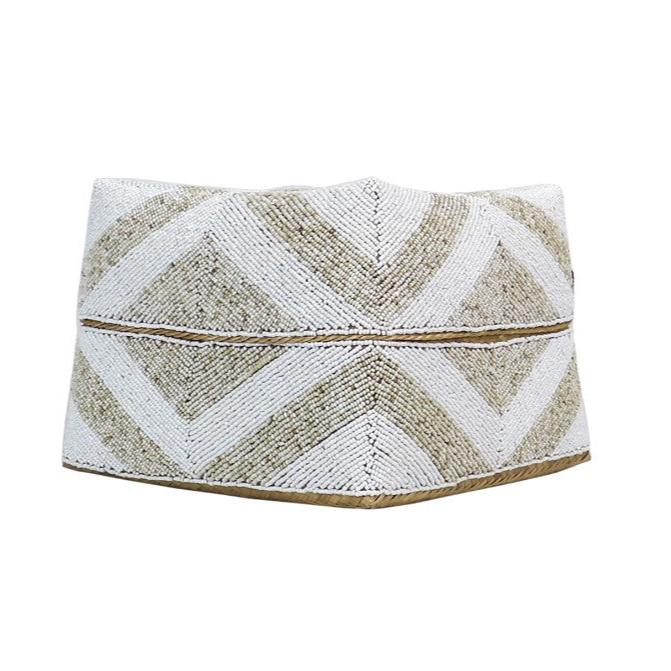 Made of natural rattan and covered in white beads, the Bali Beaded Box comes in five nesting box shapes. Each square box comes in two equally divided top-and-bottom pieces. Available in 5 sizes sold separately.
