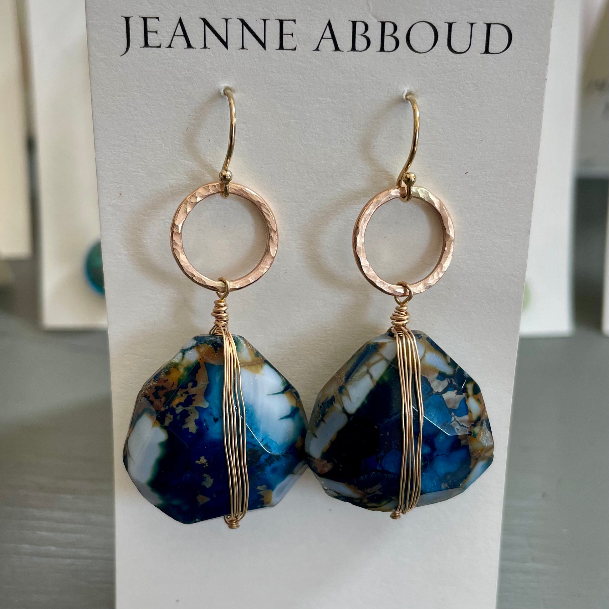 These locally handmade beauties are 14K Gold Fill and Blue Quartz and inspired by the ancient world.