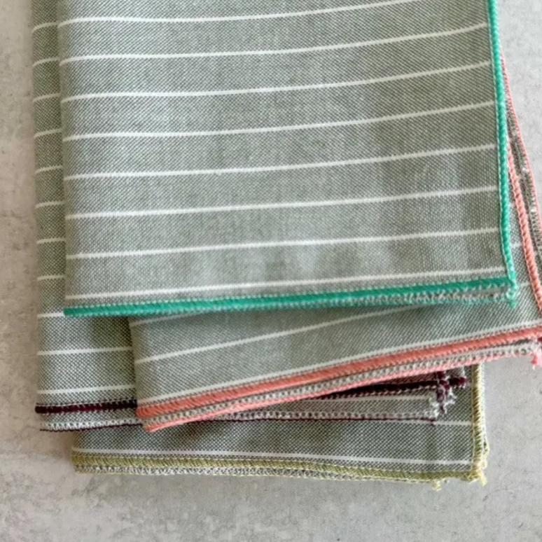 These napkins are incredibly soft and come in a playful forest green chambray stripe! Set of eight. Size: 18inch, Material: 100% cotton Regular wash, and gently dry.