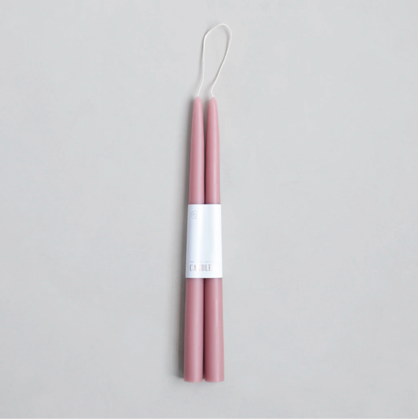 Our tapers are crafted to burn drip-free at a rate of approximately 1 hour per inch. Each candle is dipped 35 times for a superior depth of color, and pairs are joined by a braided cotton wick for the cleanest burn.