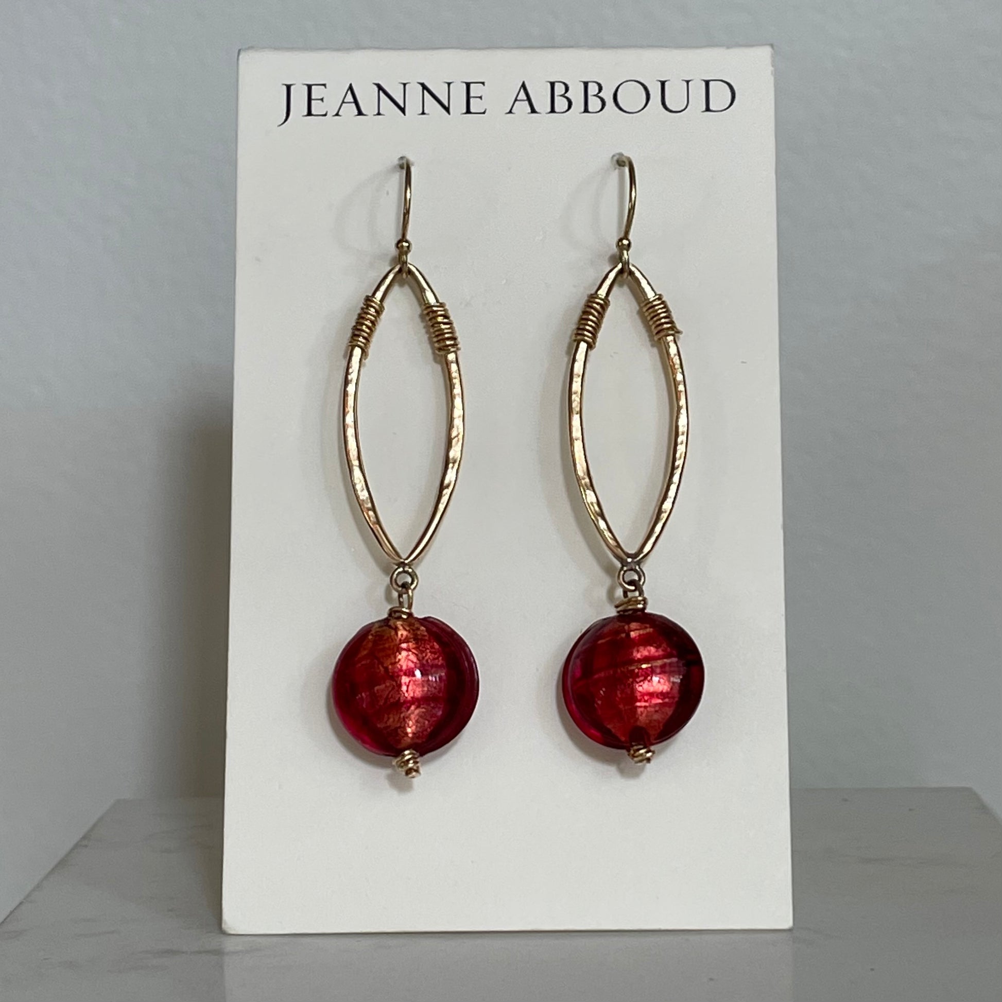 These locally handmade beauties are 14K Gold Fill and Venetian Murano Glass and inspired by the ancient world.