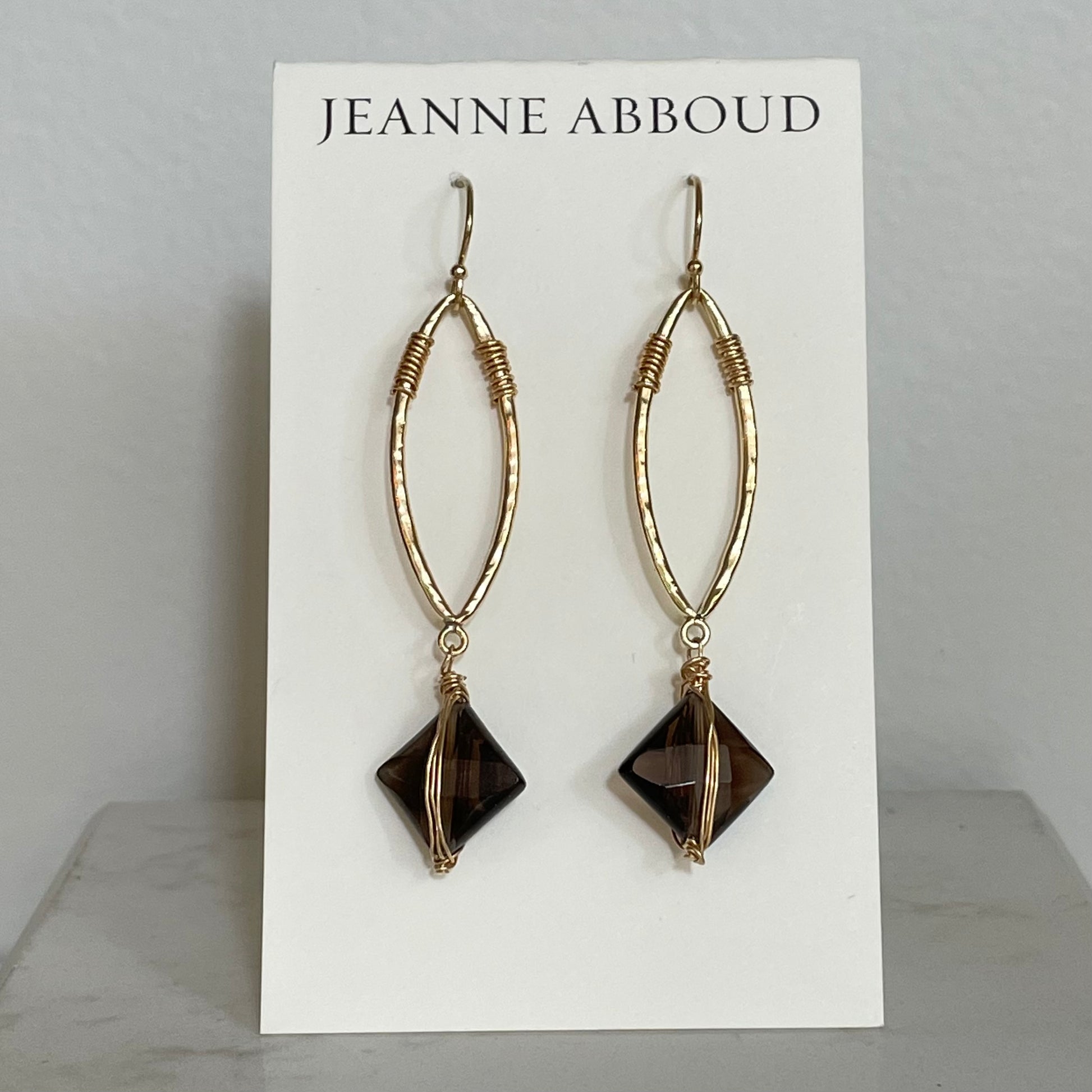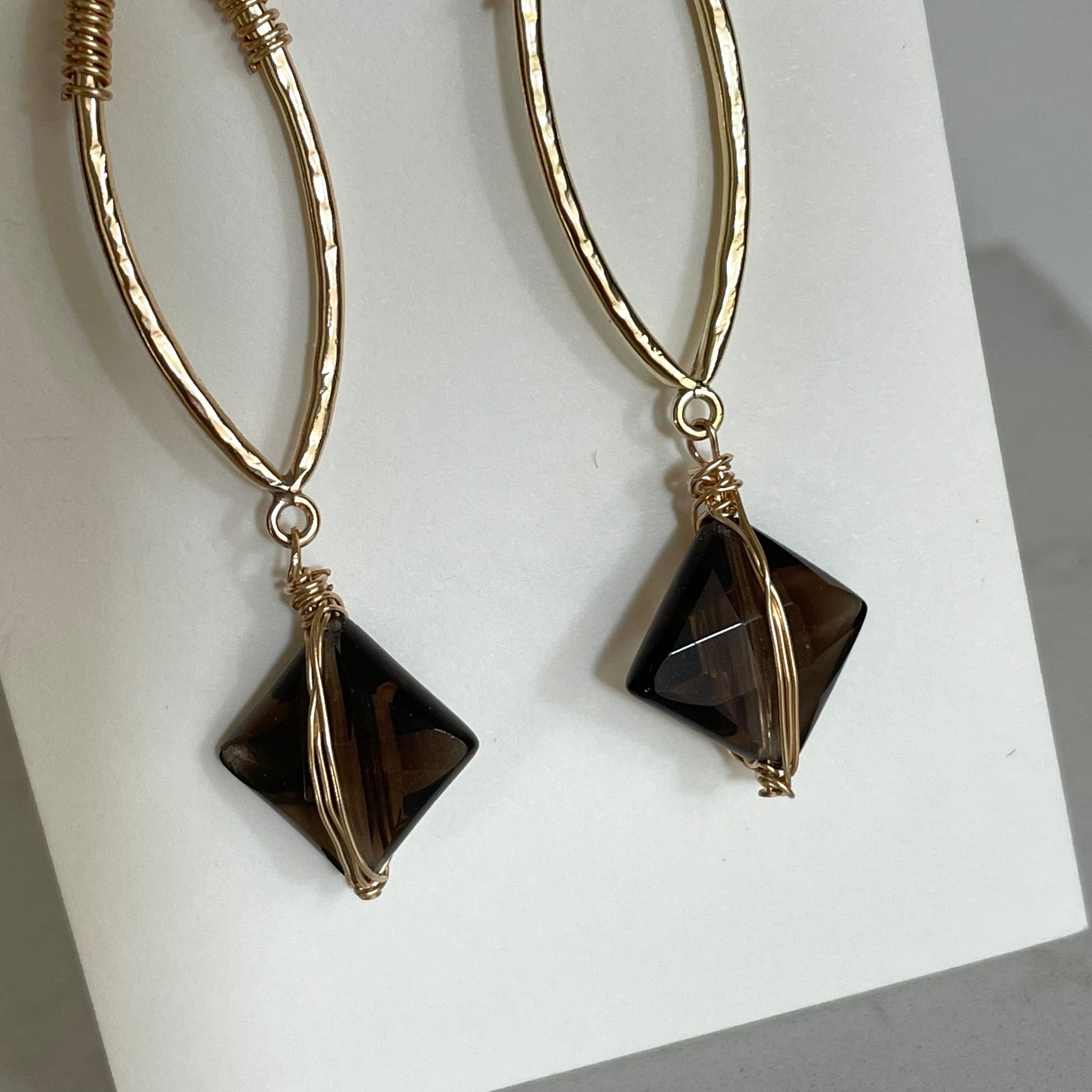 These locally handmade beauties are 14K Gold Fill and Smoky Quartz and inspired by the ancient world.