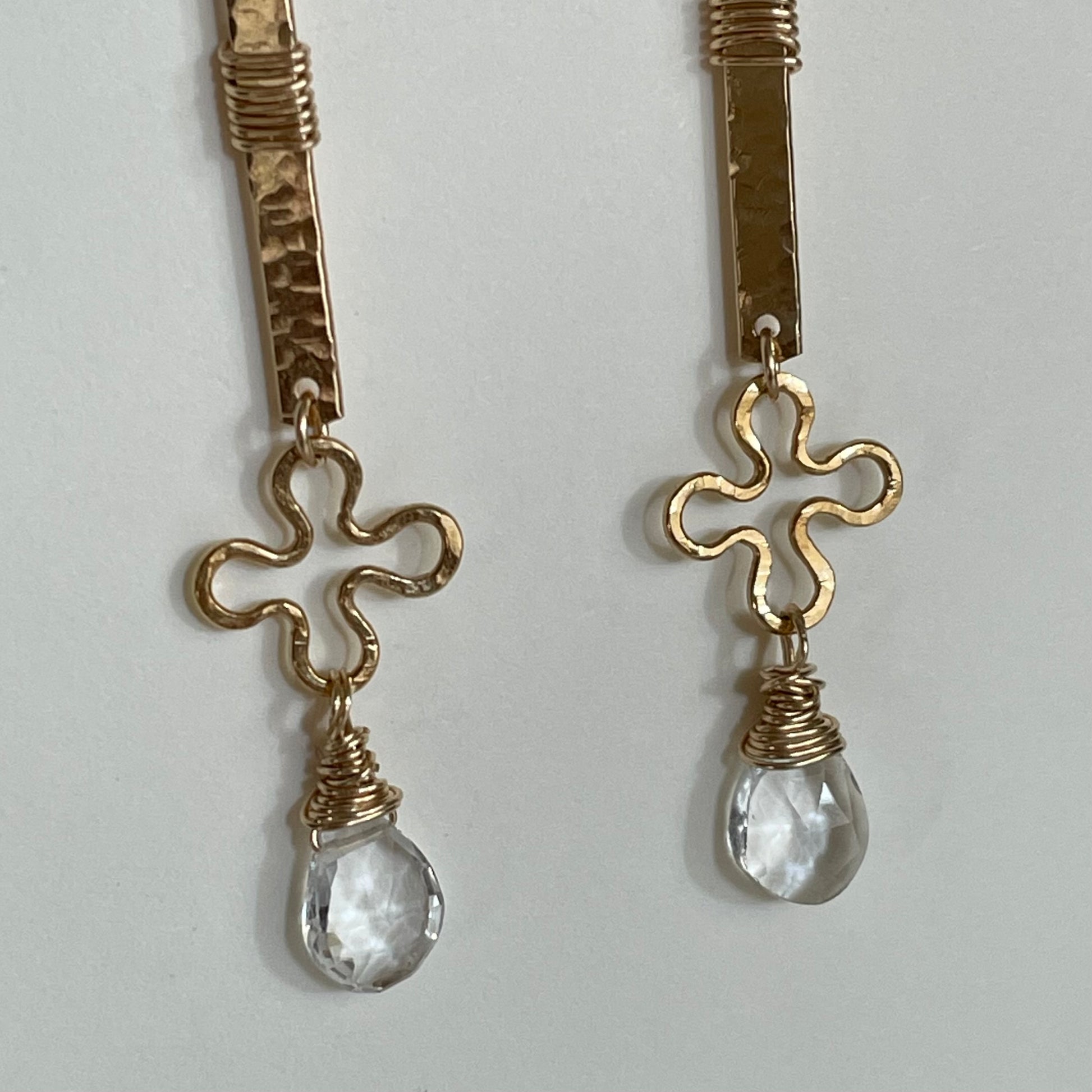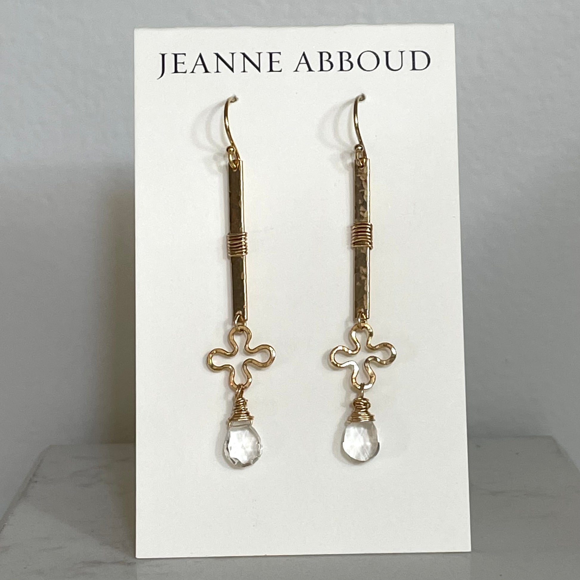 These locally handmade beauties are 14K Gold Fill and Crystal Quartz and inspired by the ancient world.