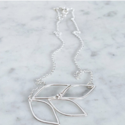This simple leaf motif is one that broadly resonates, with its symbolism for life, growth, fresh starts, new beginnings…you get the idea. The sterling silver leaf itself is about 1 7/8” wide from side to side and about 1 1/4” from top to bottom. The necklace is about 16 3/4” long with a 2” extender to give you flexibility depending on neck size and neckline.