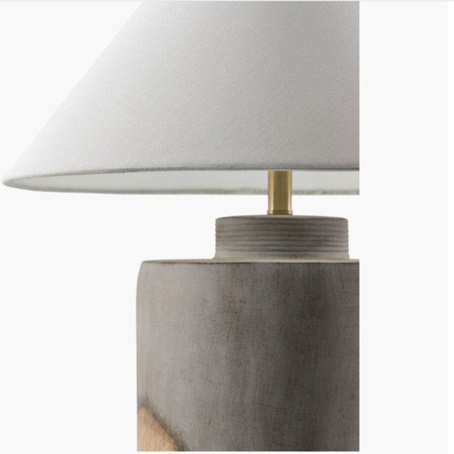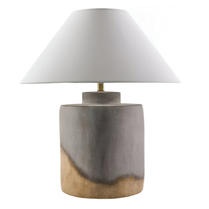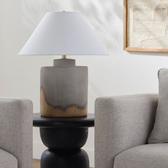 This painted gray ceramic table lamp features a distinct style that beautifully complements any space in your home. The body of the lamp is crafted from ceramic with painted gray accents. The outside shade is made from linen, offering a soft diffusion of light,