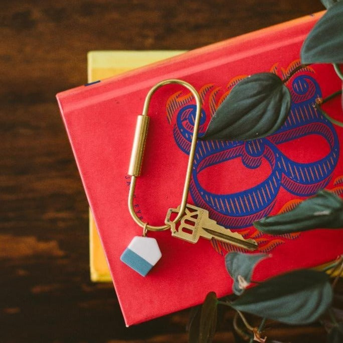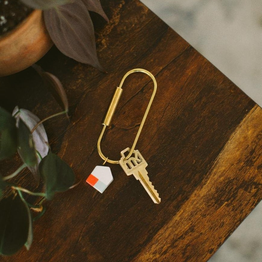 Behold the It's Good to be Home Key Ring, a chunky, colorful abode that dangles from a trusty brass key ring so you don't need to dig for nails! Reaching 4 ¼" x 1 ¼" and featuring porcelain and brass, Twenty Two West looks out for families to make sure they have a secure spot in the homestead.
