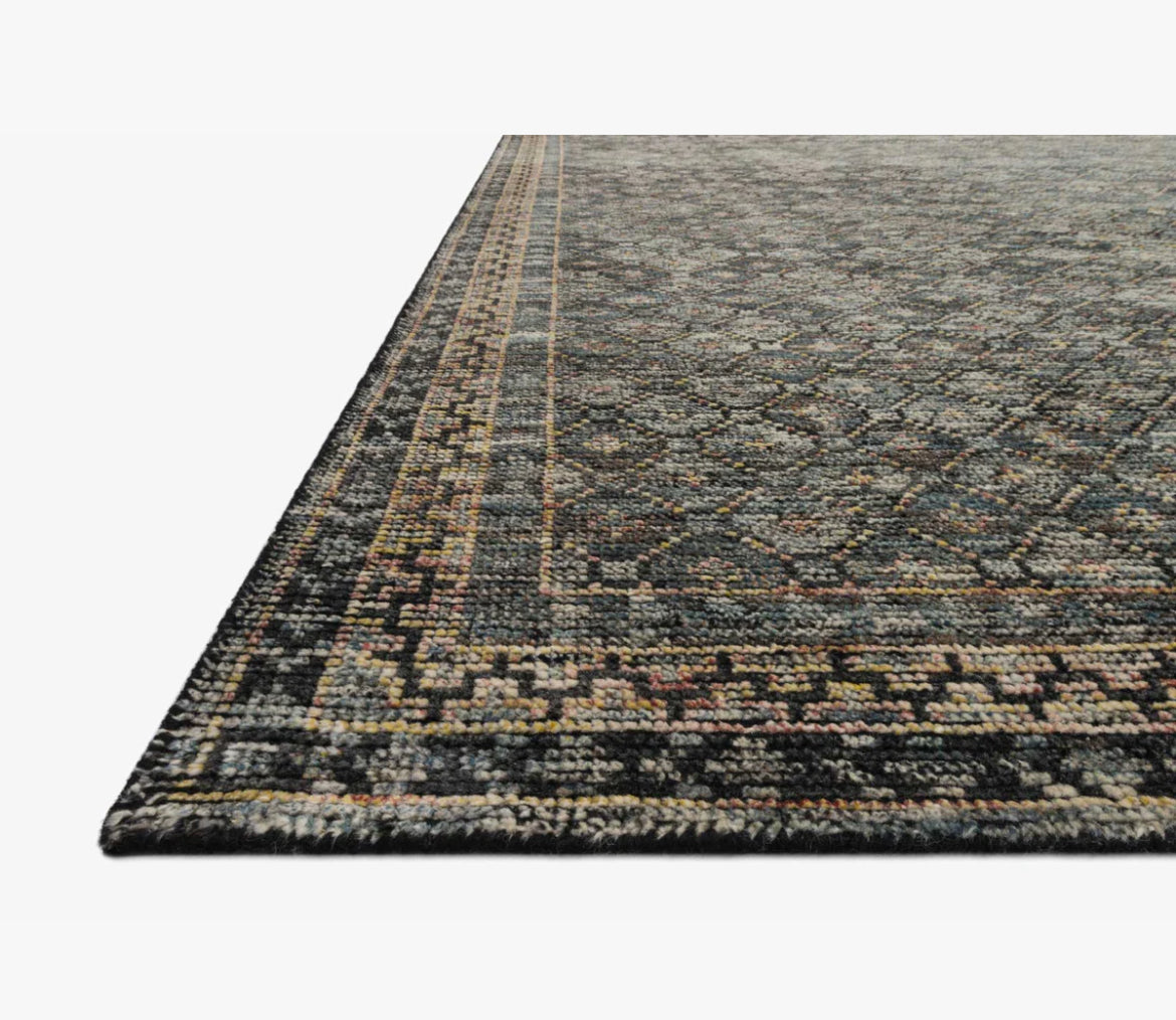 Ink and Turquoise Handknotted Rug