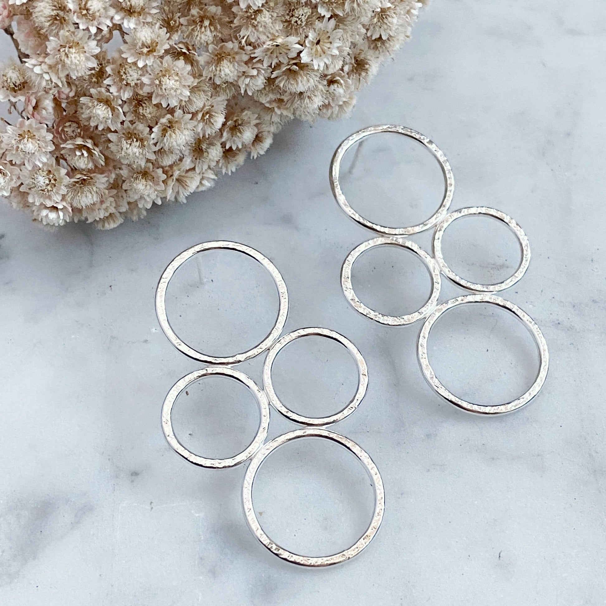 A joyous bunch of bubbles for your lobes! The Jane stud is light, large and lovely. Measuring about 1 5/8” high and 1” wide, these Argentium studs will shine but not weigh you down as you conquer the world. Hand-hammered and textured, these pretties are a perfect pair for daily wear.