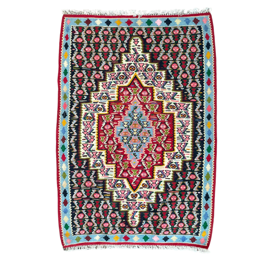 100% wool vintage kilim with vibrant vegetable dye. This is the perfect flatweave rug for a small space that needs a pop of color!