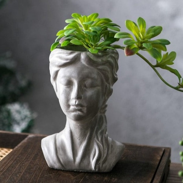 Looking to add some style and artistic flair to your home? Check out this chic cement planter! Featuring a unique bust design and rustic distressing, it's sure to make a statement. Use it to display your gorgeous greenery in a sophisticated and elegant way.