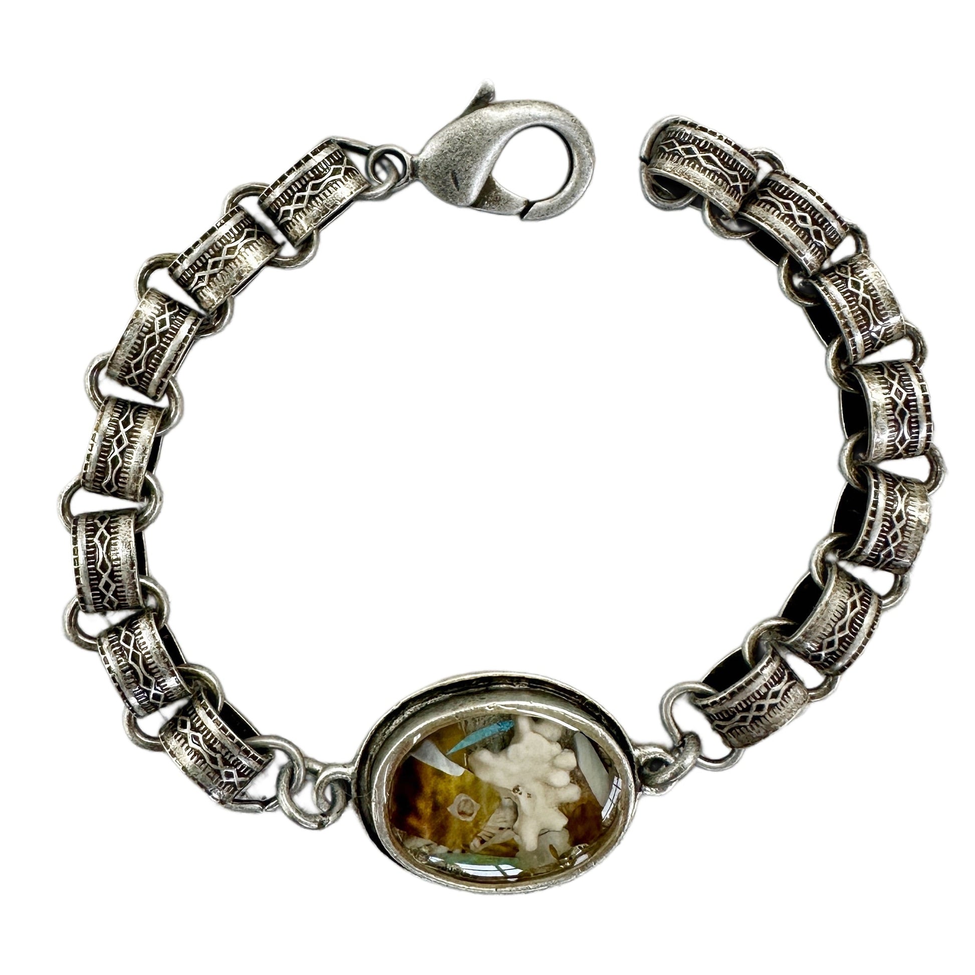 Slip on nature's charm with this whimsical beaded bracelet, where real pressed botanicals are captured in crystal-clear resin and framed by gleaming silver or gold-plated bezels. Each bead tells a botanical story, making it a conversation starter that celebrates the beauty of the natural world in wearable form.