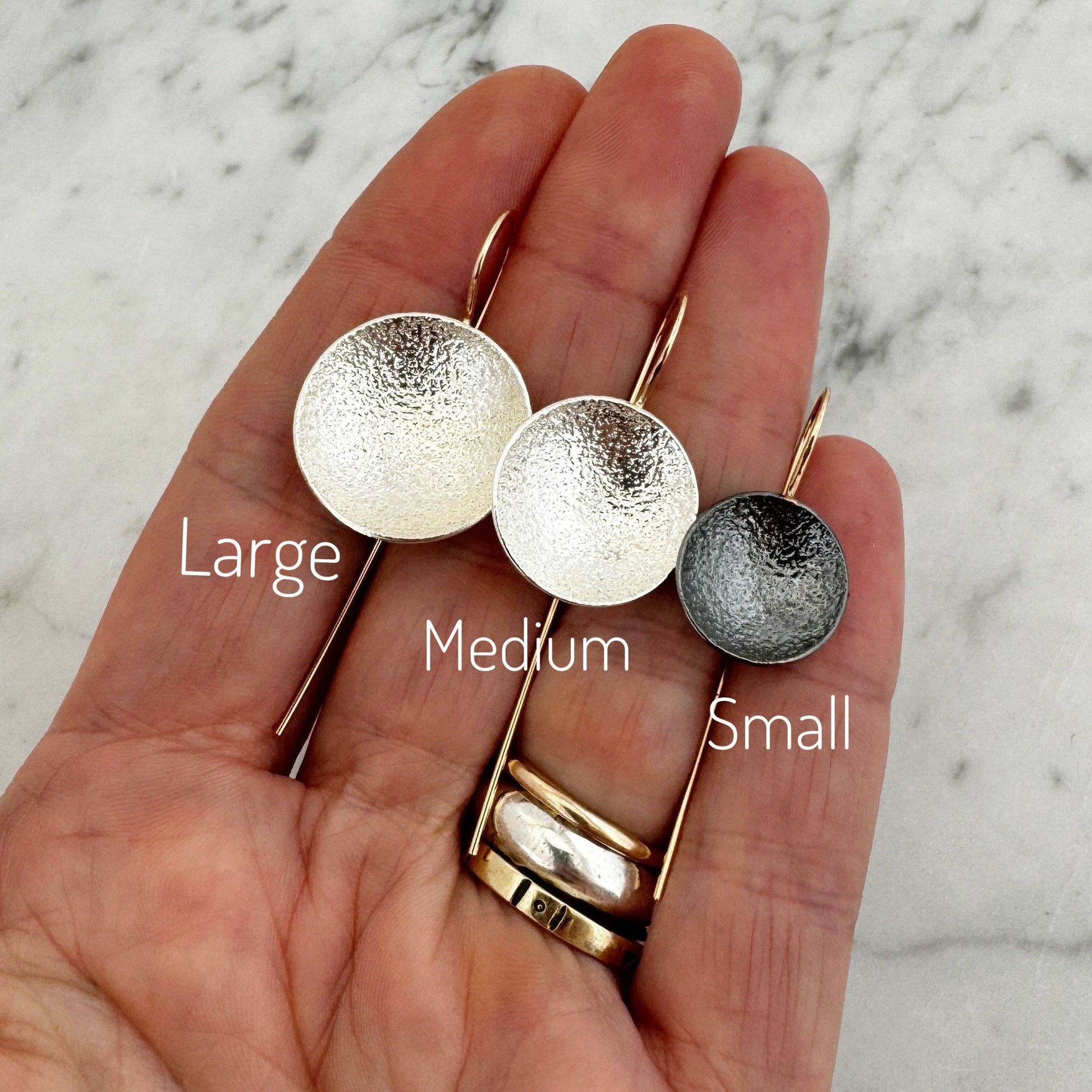 Three sizes because...I couldn't decide which one to eliminate- I like them ALL. Where are my fellow Libras at? ;) You have three sizes and two finishes to choose from-