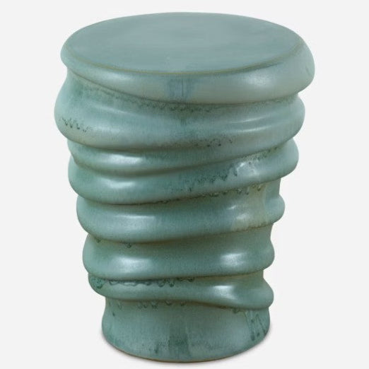 This Skylar garden stool brings an artistic touch with its unconventional design and a lovely light aqua glaze. Use it as a decorative surface or as a functional seat - it's sure to start conversations, whether inside or outside. While it can be used outdoors, be sure to protect it from freezing temperatures.