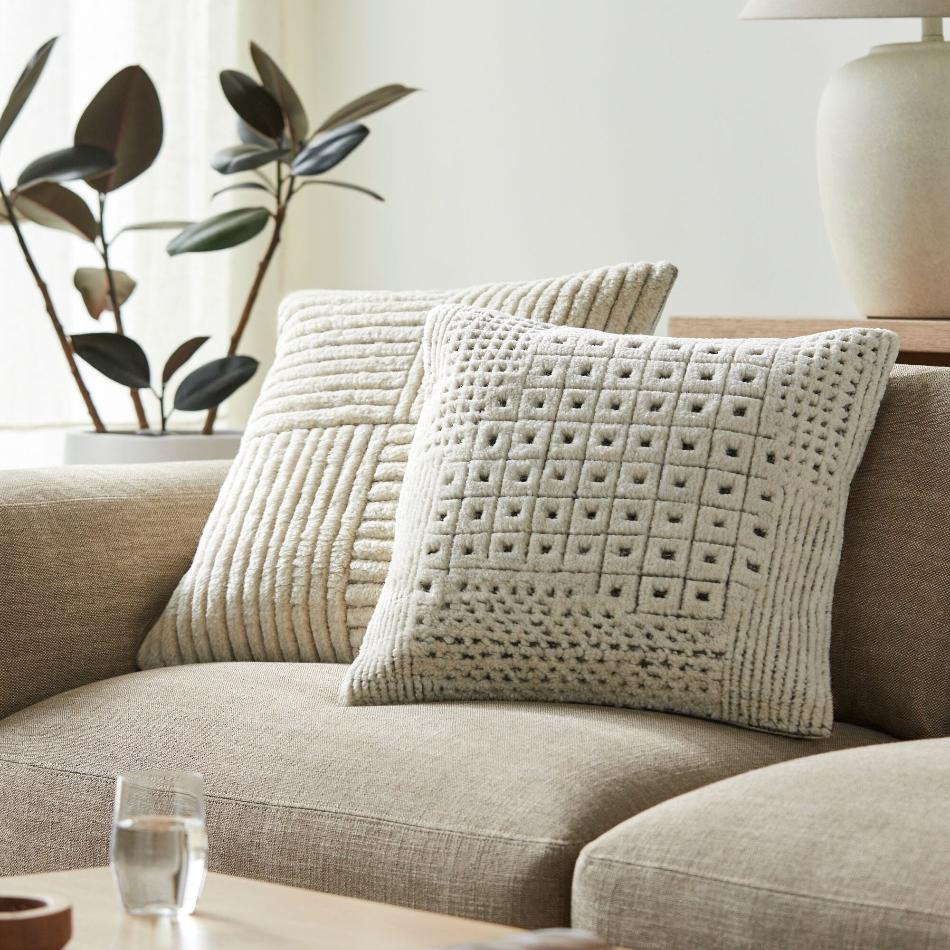 The Tunde Pillow is a beautiful neutral geometric design and very soft! Dimensions: 20"L x 20"W with Down Insert