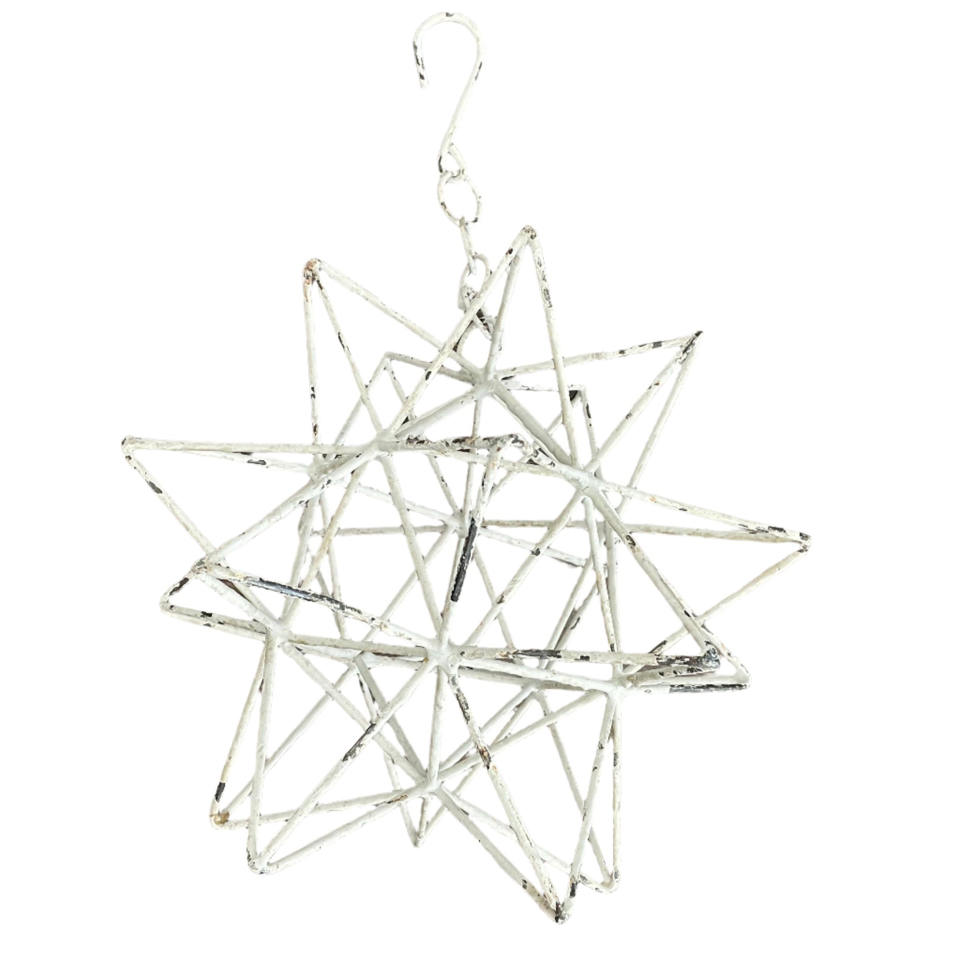 This versatile antique-inspired white star is perfect for both indoor and outdoor settings. Add charm and character by hanging it with glowing lights, on a porch or patio. Make a statement by using it as a unique decoration in any rustic-themed room.