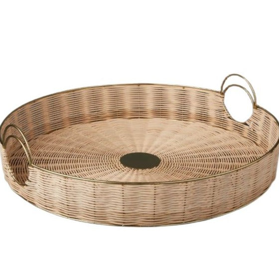 Dimensions: 25.5 round, 5" tall tray (7" total height with handles)